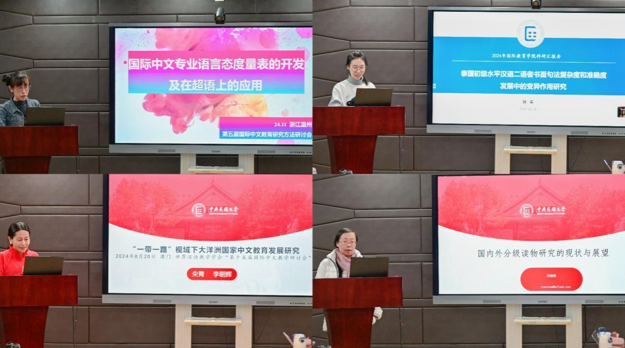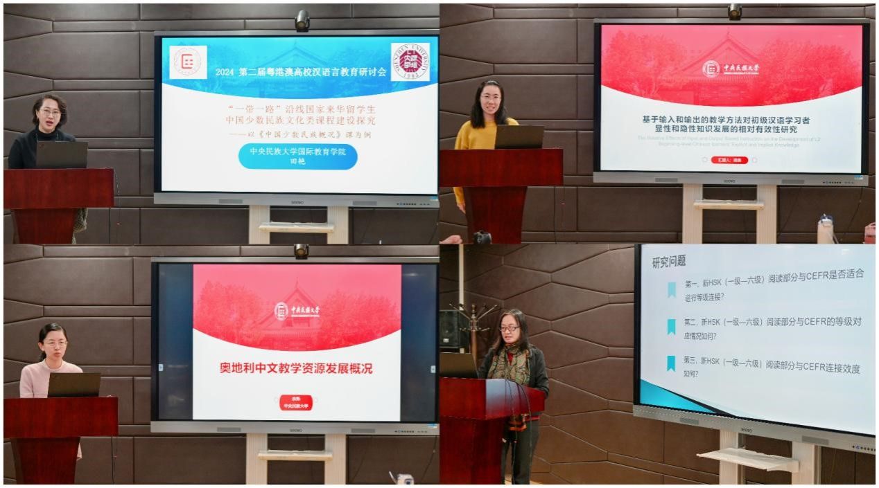 罗莲老师、央青老师和李朝辉老师、胡琬莹老师和孙晓明老师分别报告了《HSK(一级-六级)阅读理解部分与CEFR连接研究》《“一带一路”视域下大洋洲中文教育发展研究》《国际中文专业语言态度量表的开发及在超语上的应用》和《国内外分级读物研究的现状与展望》等研究。